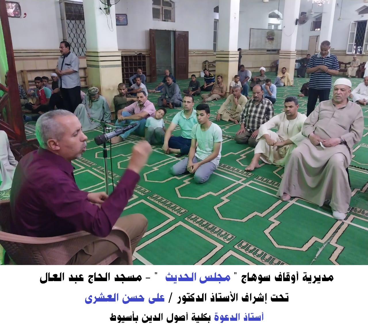 وفي مديرية أوقاف سوهاج أقيمت فعاليات مجلس الحديث بمسجد الحاج عبد العال، حاضر فيه أ.د/ علي حسن العشري أستاذ الدعوة بكلية أصول الدين أسيوط.