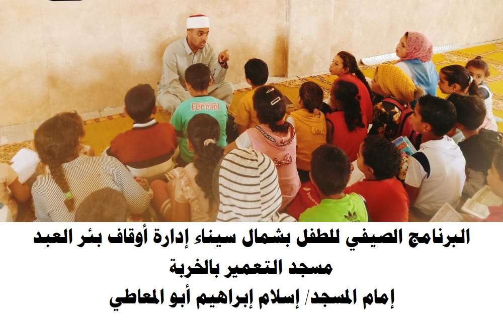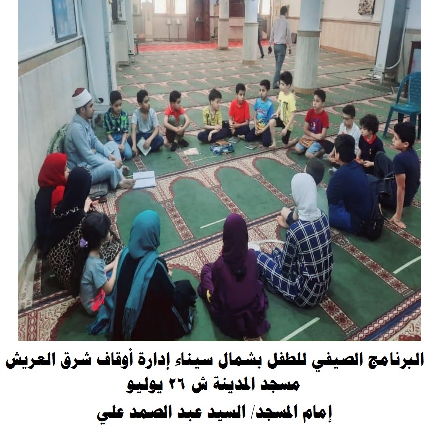 صرح الدكتور/ محمد الشحات أبو ستيت مدير عام المكتب الإعلامي بوزارة الأوقاف أنه من منطلق إيمان وزارة الأوقاف بحق الطفل في الرعاية التامة والنشأة الكريمة، وأن حق الطفل لا يقف عند حدود الغذاء الصحي أو الرياضة اللازمة لصحة البدن، إنما يشمل جوانب عديدة، من أهمّها التربية على القيم والأخلاق والثقافة الرشيدة التي تتناسب مع مرحلته العمرية، أطلقت وزارة الأوقاف فعاليات “البرنامج الصيفي للطفل” لمدة ثلاثة أشهر، وفي نتيجة سريعة لنجاح هذا البرنامج تفاعل المجتمع كله مع فعاليات البرنامج الصيفي للطفل، حيث أعلنت إدارة التثقيف والإعلام الصحي بمديرية الصحة بشمال سيناء عن مشاركة مديرية أوقاف شمال سيناء في البرنامج الصيفي 2022م تحت شعار: “جيل بكره يكبر بصحة”، حيث أعلن الدكتور/ حاسم حمدي مدير عام التثقيف والإعلام الصحي أنه قام بزيارة إلى مديرية الأوقاف بشمال سيناء للتنسيق لمجموعة من البرامج الصحية، للتوعية بأهمية الصحة العامة، حيث تم البدء بخطوات فعلية بالتنسيق مع مديرية الأوقاف لإطلاق حملات توعية مشتركة عن أهمية التوعية والتعليم الصحي للحد من انتشار الأمراض، وذلك من خلال فعاليات البرنامج الصيفي للأطفال التابع لوزارة الأوقاف بمساجد محافظة شمال سيناء.