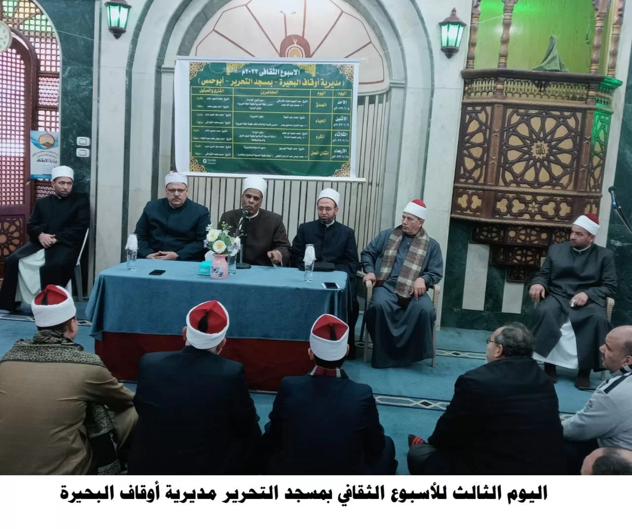 وفي مديرية أوقاف البحيرة أقيم الأسبوع الثقافي بمسجد التحرير، حاضر فيه الشيخ/ محمد محمود أبو حطب مدير مديرية أوقاف البحيرة، والقارئ الشيخ/ محمد حامد قارئًا، والمبتهل الشيخ/ أحمد عوض عبد الجواد مبتهلًا، بحضور جمع غفير من رواد المسجد.