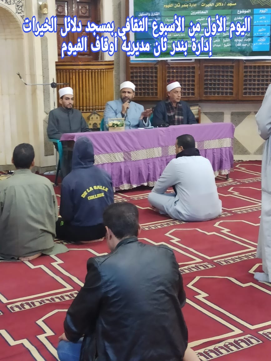 ففي محافظة الفيوم أقيم الأسبوع الثقافي بمسجد دلائل الخيرات.