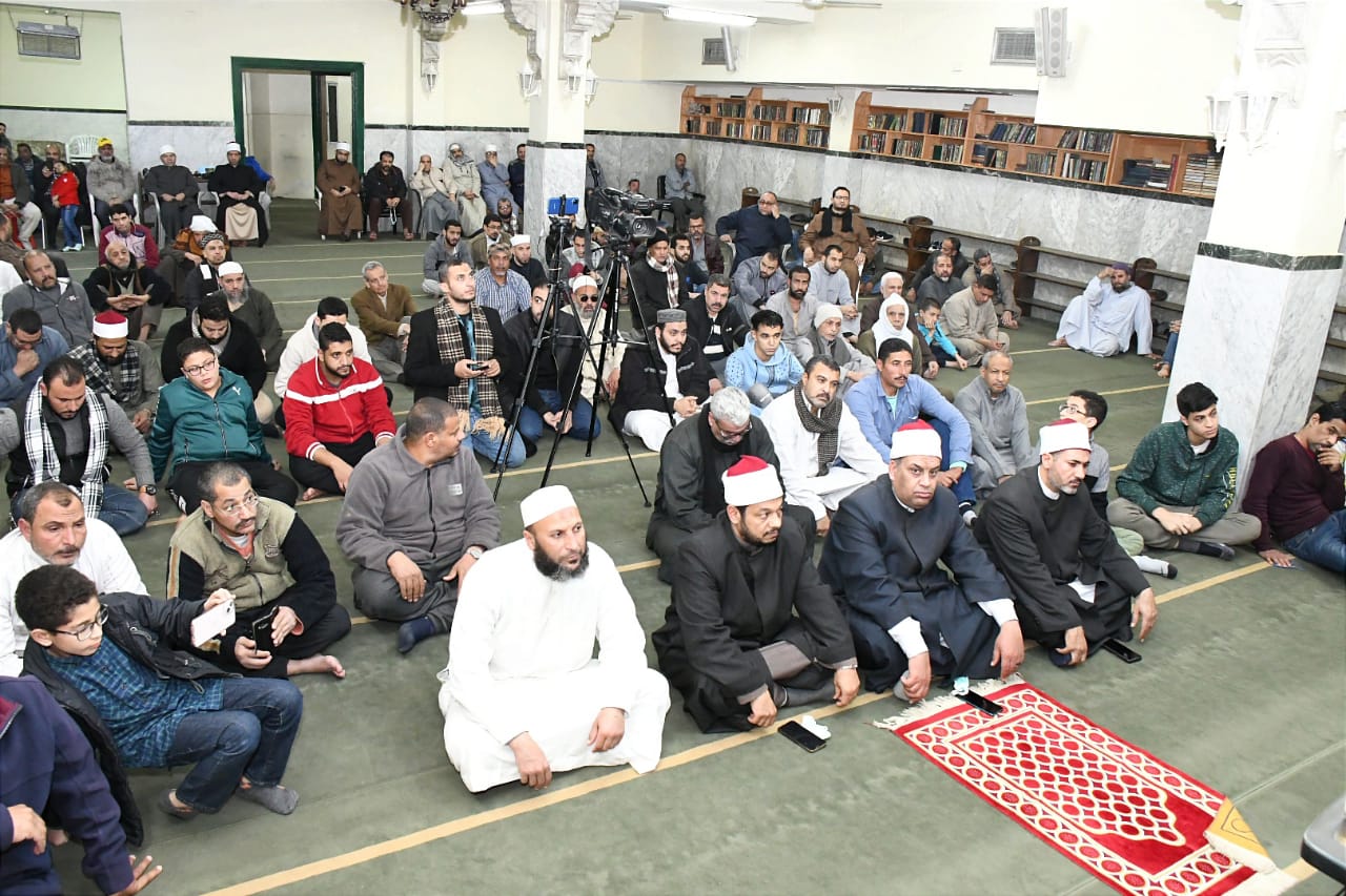 وفي كلمته أكد الدكتور/ أحمد علي سليمان عضو المجلس الأعلى للشؤون الإسلامية أن مصر لن تضيع أبدًا, ولن تسقط أبدًا, ولن تركع لغير الله, وهي التي استبقاها الله صامدة شامخة عزيزة بعز الله, وأبية برجالها وشيوخها وجيشها وأمنها, ومن هذ المسجد العامر نطلق رسالة أمل وتفاؤل للعالم كله.