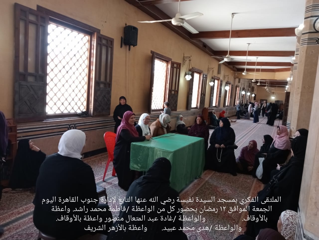 انعقاد ملتقى الفكر للواعظات بمسجد السيدة نفيسة (رضي الله عنها) بعنوان: ” الصدق في القول والعمل “