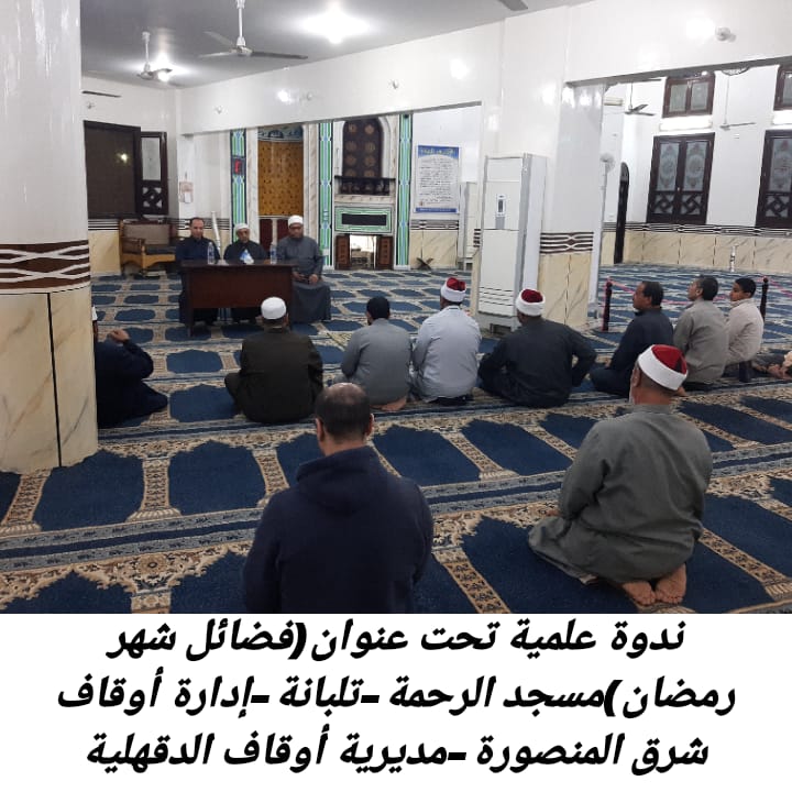 وفي مديرية أوقاف الدقهلية أقيمت ندوة بمسجد الكبير ـ قولنجيل بمدينة المنصورة، ومسجد الجمال ـــ مدينة المنصورة، ومسجد الأربعين – شاوة، ومسجد الرحمة – دكرنس، ومسجد الرحمة ــ تلبانة، ومسجد محمد بك قزامل – ميت العال ـ أجا.