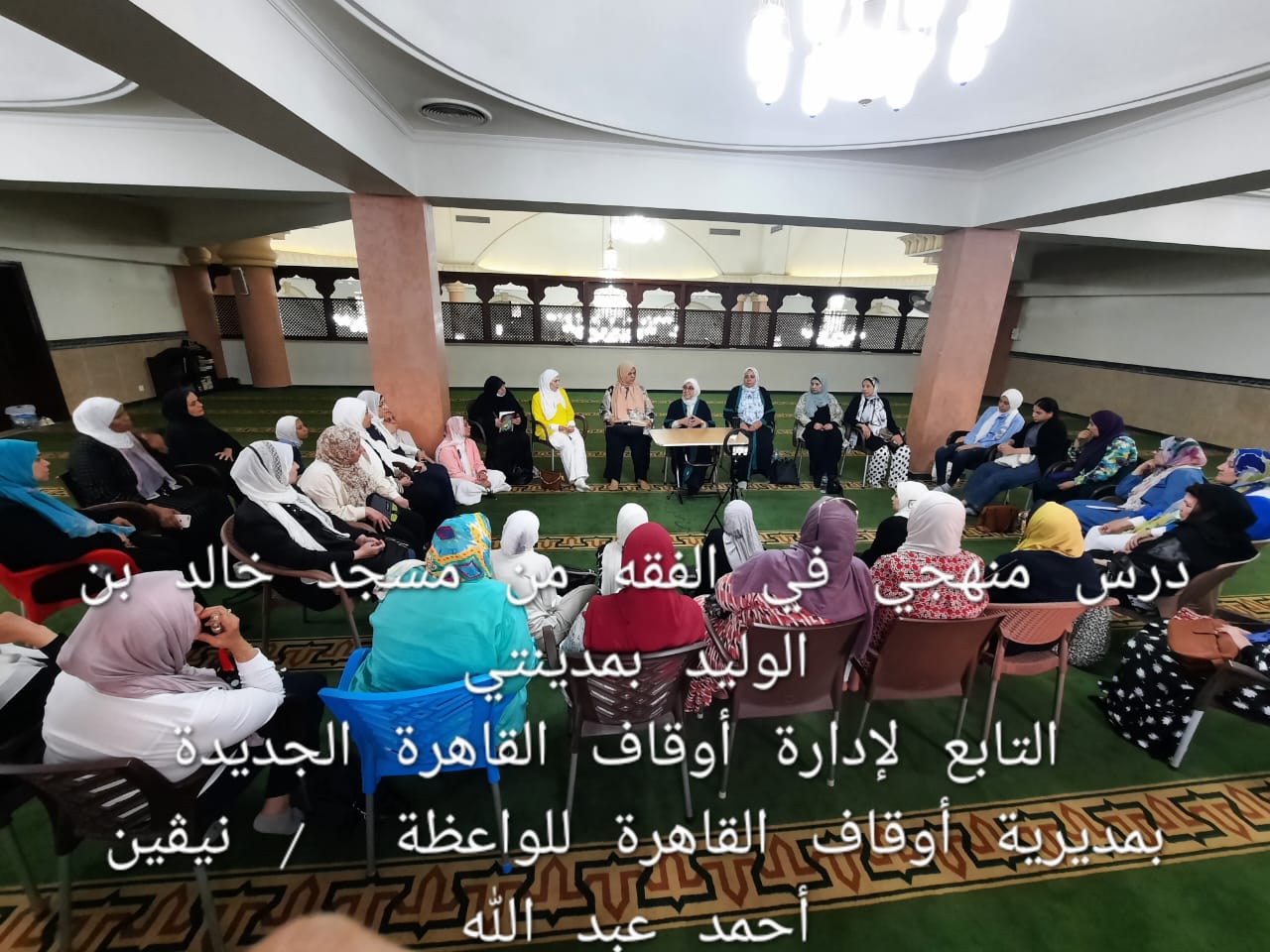 ومن مسجد خالد بن الوليد بمدينتي بالقاهرة أقيم الدرس المنهجي للواعظة/ نيفين أحمد عبد الله في مادة الفقه.