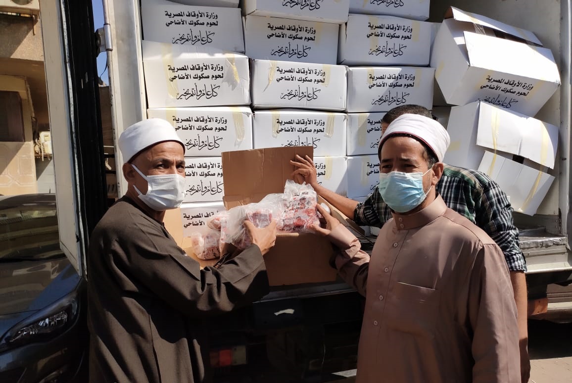 ( أسيوط- الجيزة- القليوبية- البحر الأحمر ) أربع سيارات تحمل لحوم أضاحي الأوقاف بواقع ( 4 ) أطنان لكل من محافظات ( أسيوط- الجيزة- القليوبية ) و ( 2 ) طن لمحافظة ( البحر الأحمر ) ، لتوزيع اللحوم على المستحقين الحقيقيين من الأسر الأولى بالرعاية ، وذلك للأسبوع الحادي عشر من بدء مرحلة التوزيع ، ليصبح إجمالي ما تم توزيعه ( 1198 ) طنًّا من لحوم أضاحي الأوقاف.