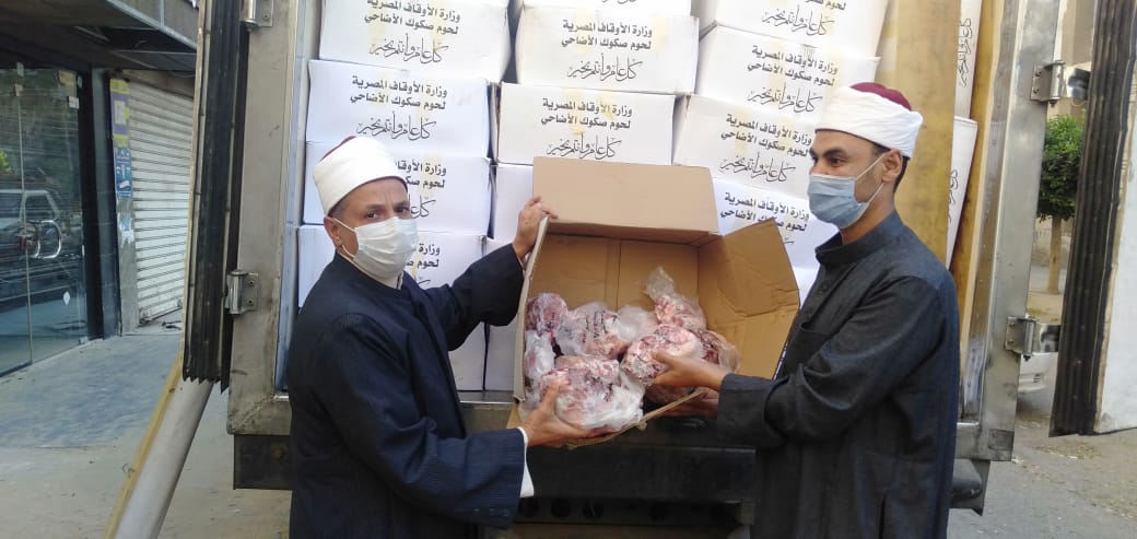 ( كفر الشيخ- المنيا- الدقهلية- دمياط- الفيوم- بني سويف ) ست سيارات تحمل لحوم أضاحي الأوقاف بواقع ( 4 ) أطنان لمحافظة ( كفر الشيخ ) و ( 3 ) أطنان لمحافظة ( المنيا ) و ( 2 ) طن لكل من محافظات ( الدقهلية- دمياط- الفيوم- بني سويف ) ، لتوزيع اللحوم على المستحقين الحقيقيين من الأسر الأولى بالرعاية ، وذلك للأسبوع العاشر من بدء مرحلة التوزيع ، ليصبح إجمالي ما تم توزيعه ( 1125 ) طنًّا من لحوم أضاحي الأوقاف.