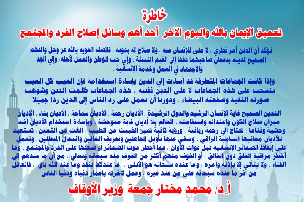 خاطرة تعميق الإيمان بالله واليوم الآخر أحد أهم وسائل إصلاح الفرد والمجتمع