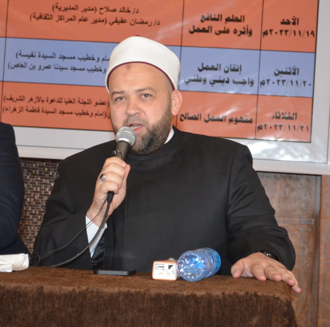 في إطار الدور التثقيفي الذي تقوم به وزارة الأوقاف اختتمت فعاليات الأسبوع الدعوي بمسجد الإحسان بالشروق بمحافظة القاهرة الثلاثاء 21/ 11/ 2023م بعنوان: “مفهوم العمل الصالح”، حاضر فيه الدكتور/ سعيد حامد مدير الدعوة بمديرية أوقاف القاهرة، والشيخ/ يسري عزام إمام وخطيب مسجد سيدنا عمرو بن العاص (رضي الله عنه) وقدم له الأستاذ/ أحمد عصام المذيع بالتلفزيون المصري، وبحضور الشيخ/ أسامة محمود جبريل مدير إدارة أوقاف الشروق وبدر، والشيخ/ علاء مطاوع المفتش بالإدارة، وجمع غفير من رواد المسجد.