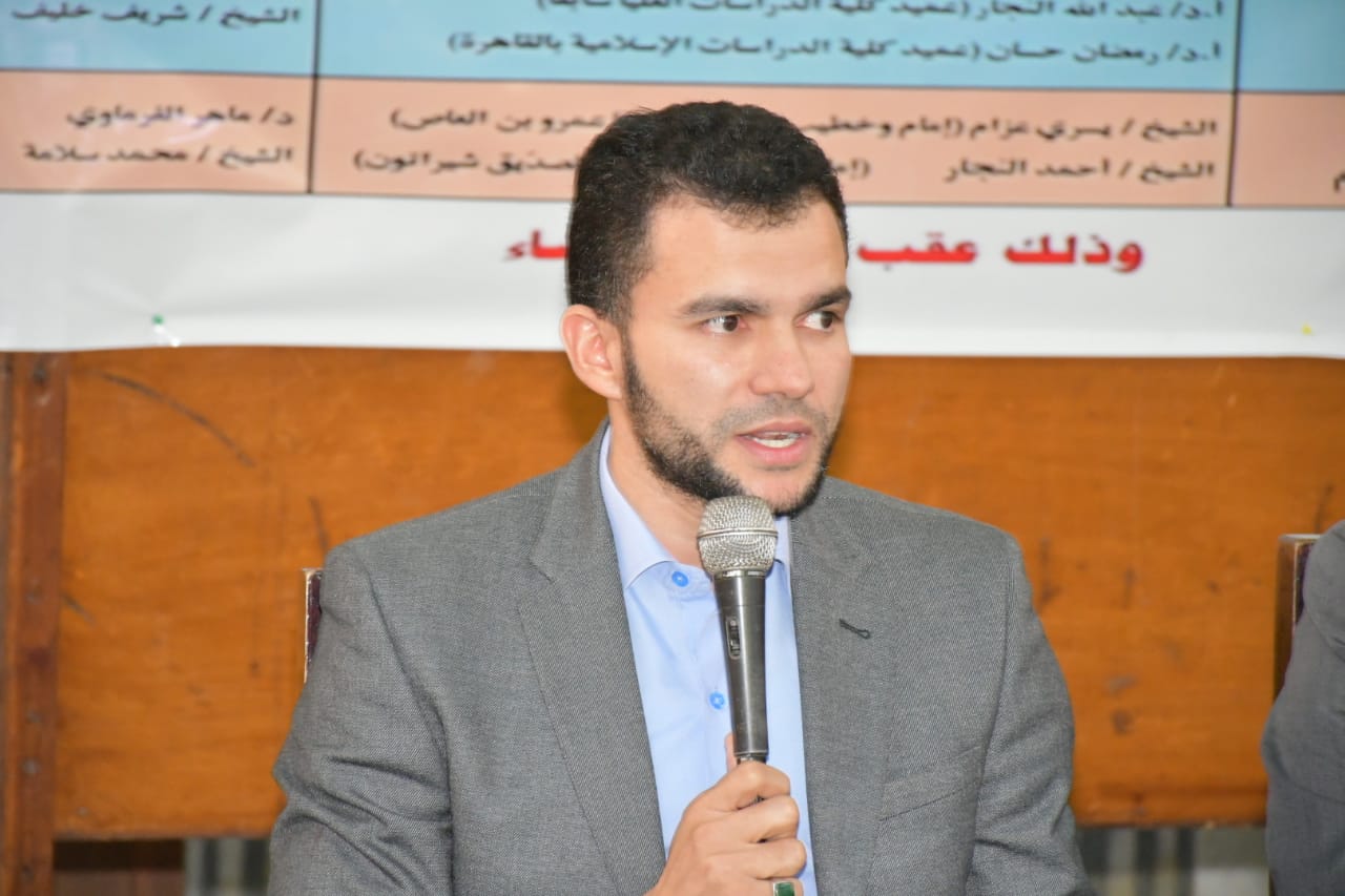 وفي كلمته قدم أ.د/ هاني تمام الشكر لوزارة الأوقاف والعاملين بها على حسن الترتيب لهذه اللقاءات الهامة التي تجمع الناس على مائدة القرآن الكريم، مؤكدًا أن النبي (صلى الله عليه وسلم) كرمه ربه ورفع قدره، مشيرًا إلى مكانة النبي (صلى الله عليه وسلم) عند الصحابة، مبينًا أن كمال الإيمان لا يكون إلا بمحبة النبي (صلى الله عليه وسلم) قال (صلى الله عليه وسلم): “لا يُؤْمِنُ أحدُكم حتى أكونَ أحبَّ إليه من ولدِهِ، ووالدِهِ، والناسِ أجمعينَ”، وأفضل علامات الحب كثرة الصلاة على النبي (صلى الله عليه وسلم).