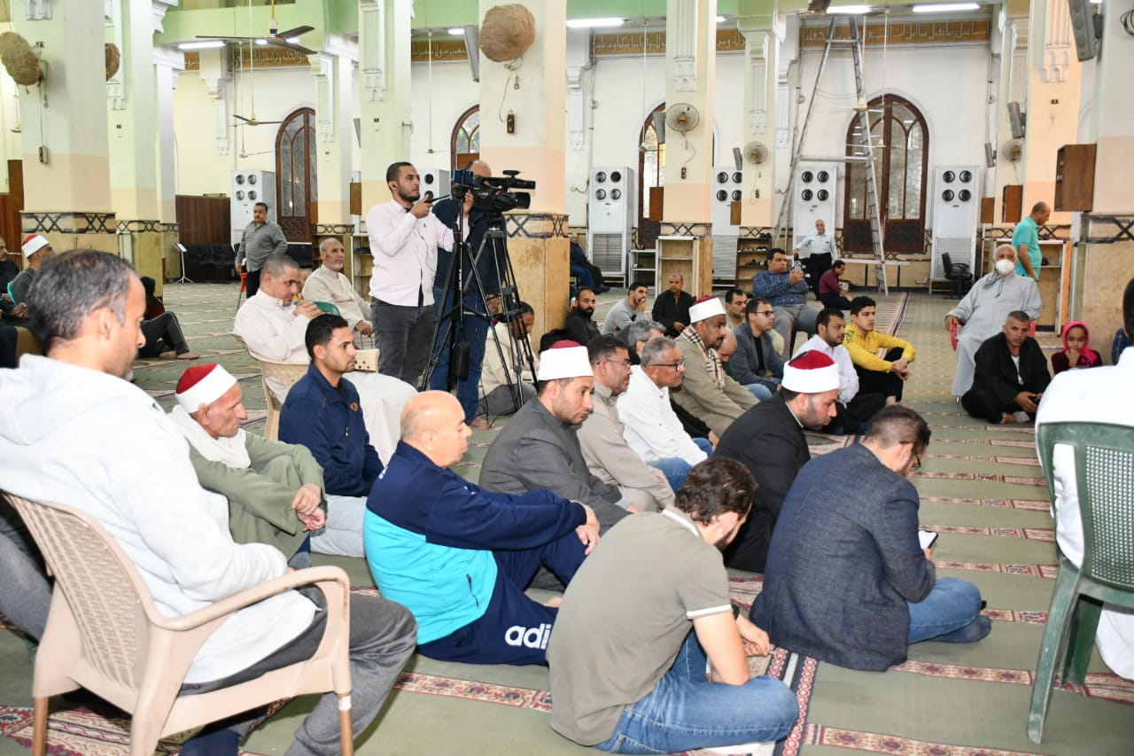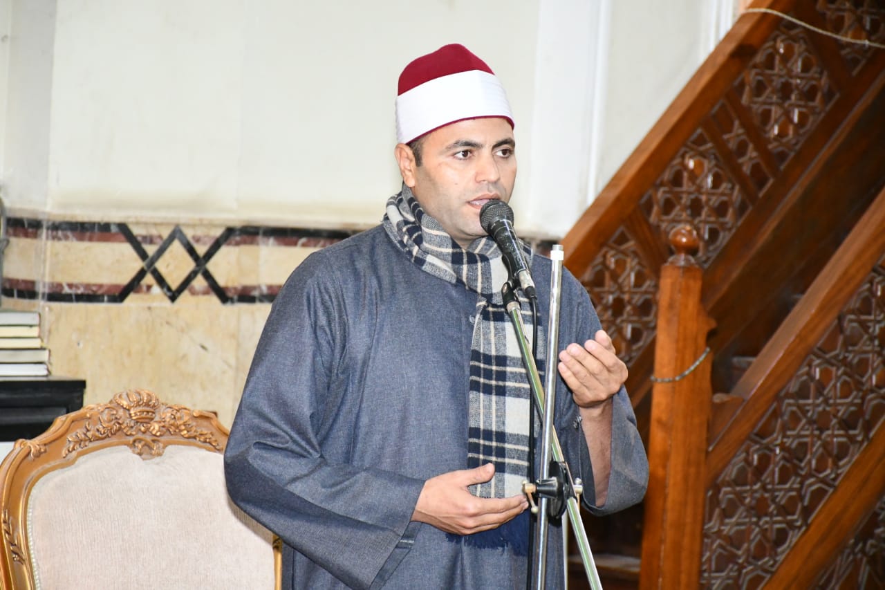 وخلال اللقاء الثقافي من مسجد “الاستقامة” بالجيزة قدم أ.د/ علي مطاوع الشكر والتقدير للقائمين على وزارة الأوقاف، مؤكدًا أن المساجد أصبحت منارة للعلم والعلماء، فوجدنا بها مجالس العلم ومجالس القرآن الكريم، مبينًا أن للصلاة على النبي (صلى الله عليه وسلم) فضل عظيم، فالمداومة على الصلاة والسلام على النبي (صلى الله عليه وسلم) تزيل الهم وتفرج الكرب، وقد شرفت أمة النبي (صلى الله عليه وسلم) بالصلاة على النبي (صلى الله عليه وسلم)، يكفينا شرفًا أن الله (عز وجل) قبل أن يأمرنا بالصلاة على النبي (صلى الله عليه وسلم) بدأ بها ثم بين أن الملائكة يصلون على النبي (صلى الله عليه وسلم) ثم أمر بها عباده من المؤمنين به يقول تعالى: “إِنَّ اللَّهَ وَمَلَائِكَتَهُ يُصَلُّونَ عَلَى النَّبِيِّ يَا أَيُّهَا الَّذِينَ آمَنُوا صَلُّوا عَلَيْهِ وَسَلِّمُوا تَسْلِيمًا”.