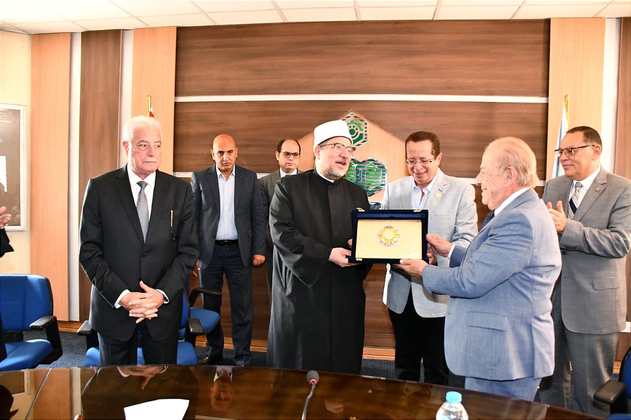 أهدى المهندس/ سمير عارف رئيس جمعية المستثمرين بالعاشر درع جمعية المستثمرين بالعاشر من رمضان لمعالي أ.د/ محمد مختار جمعة وزير الأوقاف تقديرًا لجهوده في نشر الفكر الوسطي المستنير وخدمة الدعوة الإسلامية وعمارة المساجد.