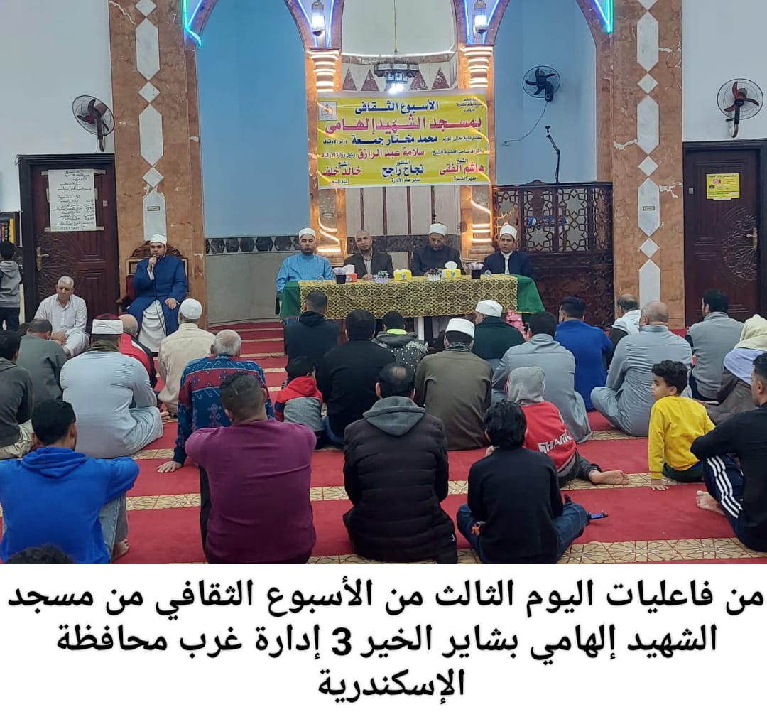 وفي محافظة الإسكندرية أقيم الأسبوع الثقافي بمسجد الشهيد إلهامي – بشاير الخير-.