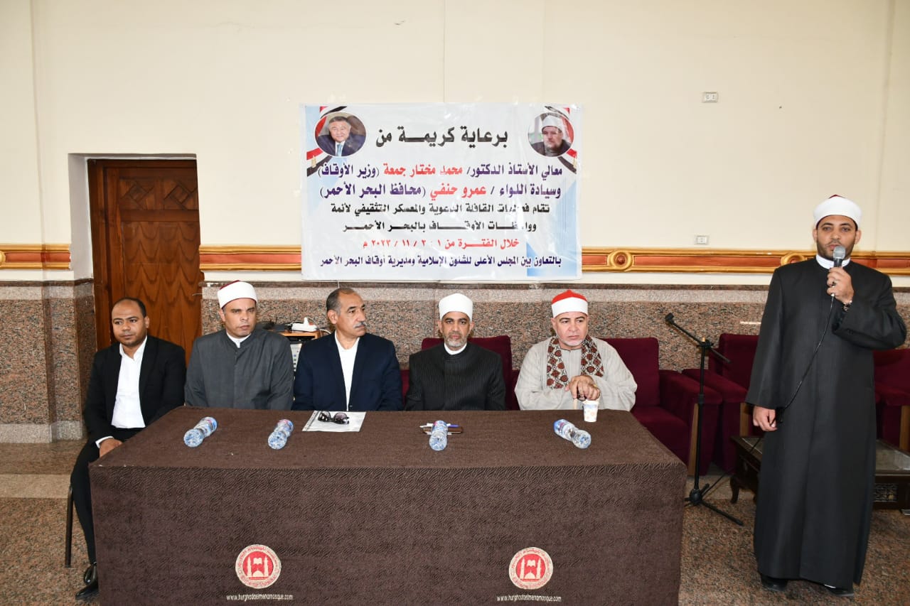 في إطار البرامج التدريبية والتثقيفية المتنوعة والمتميزة التي تقيمها وزارة الأوقاف لنشر الفكر الإسلامي الوسطي، وتصحيح المفاهيم الخاطئة، استمرار المعسكر التثقيفي بمسجد الميناء الكبير بالغردقة البحر الأحمر تحت عنوان: “الحفاظ على الاوطان من مقاصد الأديان”، بحضور د/ محمد عزت أمين عام المجلس الأعلى للشئون الإسلامية، وأ.د/ محمد عطية الرزيقي أستاذ علم اللغة بكلية الألسن جامعة جنوب الوادي، والشيخ/ هاني السباعي مدير مديرية أوقاف البحر الأحمر، والسيد اللواء/ ياسر حماية رئيس مدينة الغردقة، والشيخ/ عبد اللطيف وهدان القارئ بالإذاعة والتليفزيون قارئا، والشيخ/ أحمد مقلد المبتهل بالإذاعة والتليفزيون مبتهلا، والشيخ/ عبد الباسط عثمان مدير الدعوة والمنسق الإعلامي بالمديرية مقدما، وبحضور مديري الإدارات وأئمة أوقاف البحر الأحمر.
