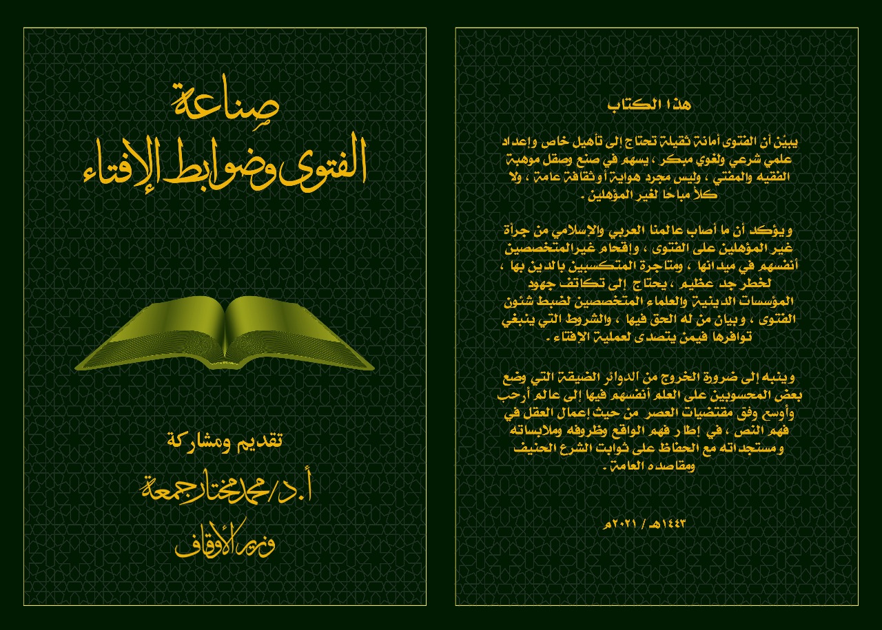 كتاب صناعة الفتوى وضوابط الإفتاء للاطلاع على الكتاب اضغط هنا
