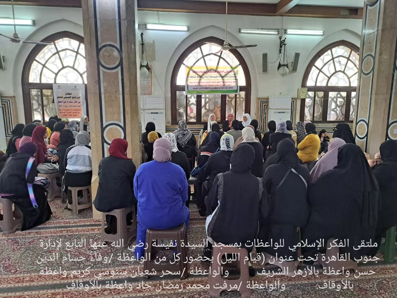 1- مسجد السيدة نفيسة (رضي الله عنها) بمديرية أوقاف القاهرة، شاركت فيه كل من: الواعظة/ مرفت محمد رمضان جاد من واعظات الأوقاف، والواعظة/ سحر شعبان سنوسي كريم من واعظات الأوقاف، والواعظة/ وفاء حسام الدين حسن من واعظات الأزهر الشريف.