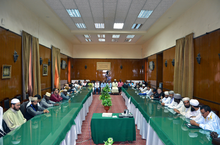 اجتمع معالي أ.د/ محمد مختار جمعة وزير الأوقاف اليوم الأربعاء 12 / 4 / 2017م بالمحكمين والمتسابقين في المسابقة العالمية الرابعة والعشرين للقرآن الكريم ويهديهم بعض إصدرات الأوقاف والمجلس الأعلى للشئون الإسلامية ، وهو ما حاز ثناء الجميع وتقديرهم وإشادتهم بجهود وزارة الأوقاف في نشر الفكر الوسطي وتصحيح المفاهيم الخاطئة.