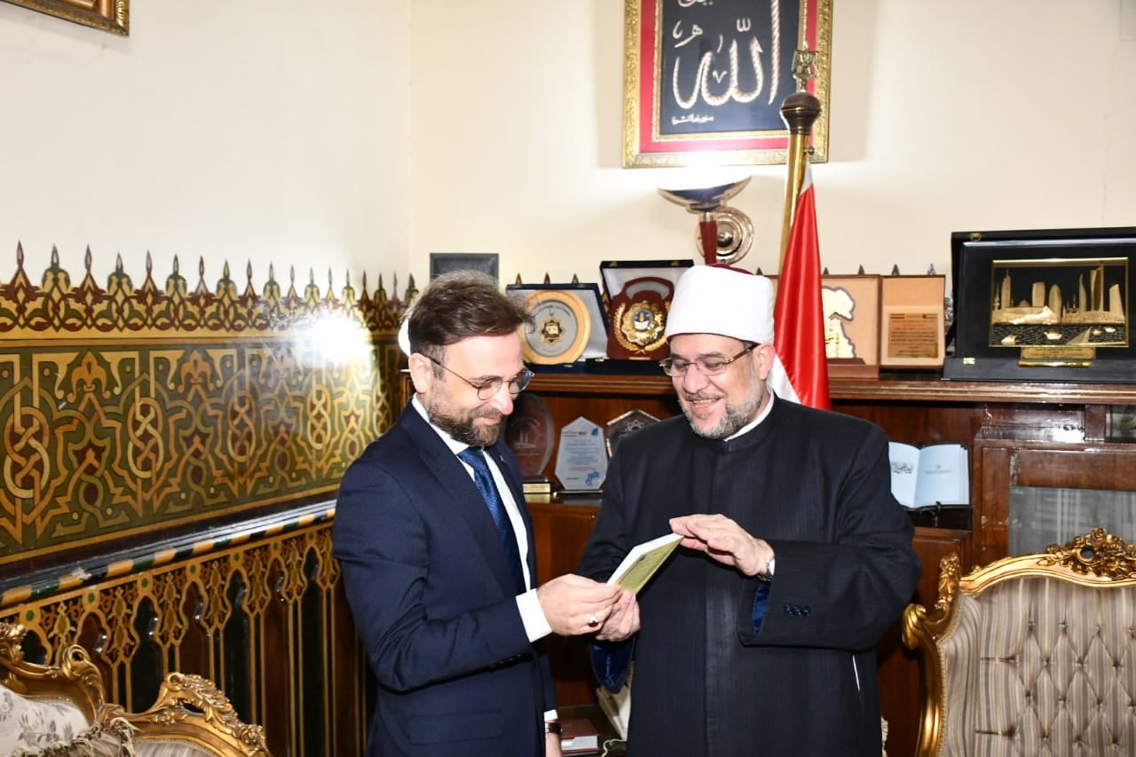 استقبل معالي الأستاذ الدكتور/ محمد مختار جمعة وزير الأوقاف الأستاذ الدكتور/ بولنت أتشر عميد معهد الدراسات الإسلامية بجامعة أوسنابروك بألمانيا والوفد المرافق له اليوم السبت 19 / 3 / 2022م بديوان عام وزارة الأوقاف ، وذلك لبحث أوجه التعاون المشترك ورغبة المعهد في الاستفادة من تجربة الأوقاف المصرية في تدريب الأئمة والواعظات ونشر الفكر الوسطي المستنير.
