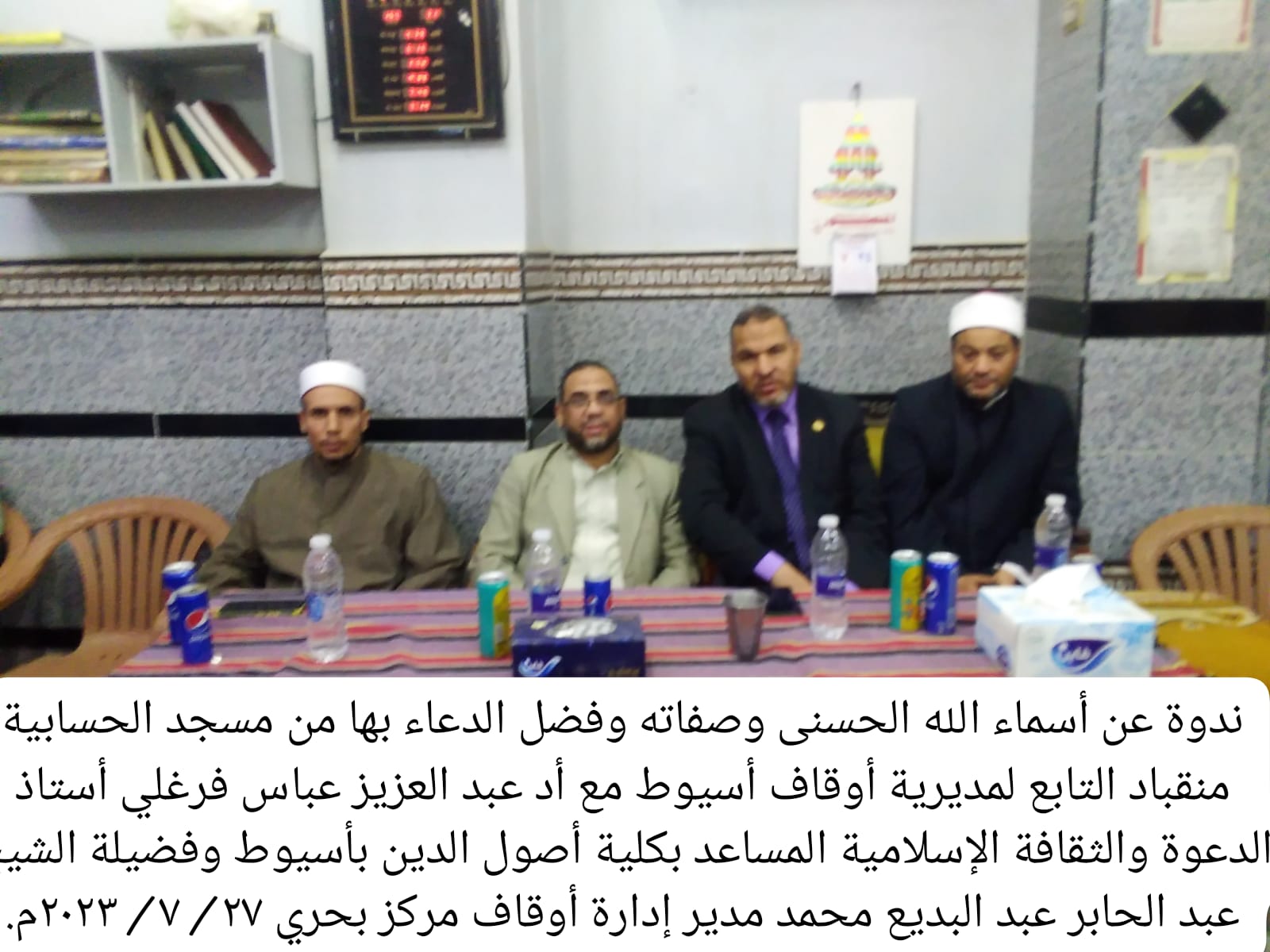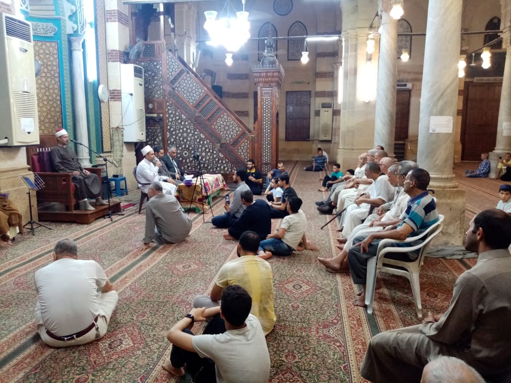 في إطار دور وزارة الأوقاف في نشر الفكر الوسطي المستنير، وفي إطار الدور الريادي الذي تقوم به وزارة الأوقاف في نشر الفكر الوسطي وتصحيح المفاهيم الخاطئة، أقيمت الخميس 27 /7 /2023م بعد صلاة العشاء (114) ندوة عن أسماء الله الحسنى وذكره ومناجاته سبحانه بها، وسط تأكيد على أن ذكر الله (عز وجل) سواء كان عامًا أو خاصًا بأسمائه الحسنى فهو مما تطمئن به القلوب، وأن الذكر ليس مجرد ألفاظ يرددها اللسان، إنما هي حالة يعيشها الإنسان تتملك قلبه وحسه استحضارًا لعظمة الله ومراقبة له، فمن أدرك أن الله سميع عليم لا تخفى عليه خافية في الأرض ولا في السماء لا يمكن أن يخالف أمر الله سبحانه، ومن أيقن أن الأمور كلها بيد الله (عز وجل)، وأن ما أخطأك لم يكن ليصيبك، وأن ما أصابك لم يكن ليخطئك، وأن الأمر كله لله، وأن الخالق الرازق هو الله، اطمئن قلبه بما عند الله، وأننا عندما نتحدث عن أسماء الله الحسنى وعن ذكره سبحانه بها فإن علينا أن نستحضر في القلب معناها وأن نعيشها، وأن نتخلق بها.