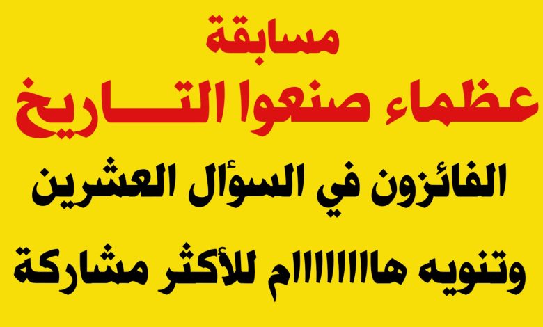مسابقة عظماء صنعوا التاريخ الفائز في السؤال العشرون و تنويه هاااااام للأكثر مشاركة