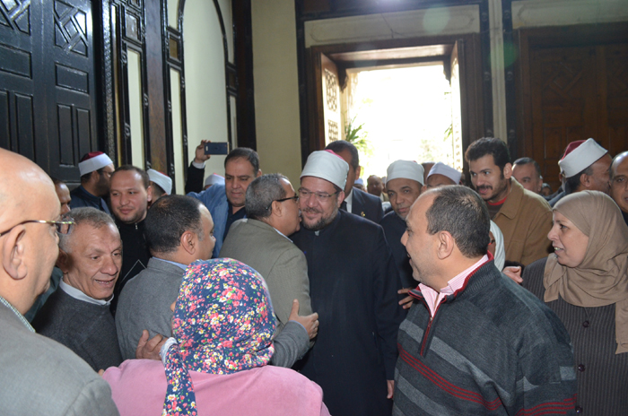 استقبل العاملون والعاملات والقيادات بوزارة الأوقاف معالي الوزير أ.د/ محمد مختار جمعة صباح اليوم الأربعاء 15 / 2 / 2017م بفرحة عارمة وتعالت زغاريد الموظفات بالوزارة ابتهاجًا باستمرار الوزير في قيادة العمل بالوزارة .