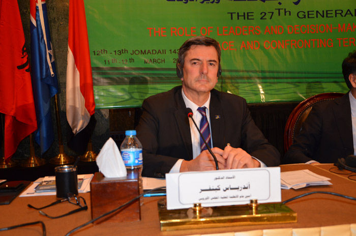 ومن ناحية أخرى أشار الأستاذ / ميرك ألن نائب وزير شئون الأديان بدولة كازاخستان إلى أن بلاده تؤمن بالتعاون مع كل الدول في مواجهة الإرهاب وتعمل جاهدة للقضاء على الأسباب الاجتماعية التي تؤدي إلى انتشار هذه الظاهرة ، مشيرًا إلى أن دولة كازاخستان تتسم بأنها متعددة الأديان ، متخذة من الحوار سبيلا للرقي والتواصل بين طوائف الشعب والسلم الاجتماعي ومحاربة التطرف ، موضحا أن فخامة الرئيس قد استجاب لمبادرة السيد الرئيس / عبد الفتاح السيسي لمحاربة الإرهاب في الشرق الأوسط ، مبيناً أن بلاده تنظم مؤتمرات تعزز من خلالها قيمة الحوار بين الأديان في العالم.