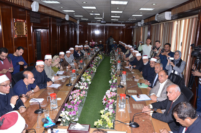 وفي بداية اللقاء أعرب السيد المحافظ عن سعادته البالغة بلقاء معالي وزير الأوقاف والسادة الأئمة واصفا معالي الوزير بالقامة العلمية والفكرية التي تعتز بها مصرنا الغالية لما له من جهد وطني ووطني على المستوى الفكري والثقافي ، مشيدا بالمستوى العلمي والدعوي لأئمة الأوقاف ومدى الارتقاء والتطوير للخطاب الديني الذي يراعي البعد الوطني ويؤلف بين فئات المجتمع وينشر السلم والمحبة بين أبنائه مما يعبر عن سعة الأفق الثقافي والعقلي لدى الإمام.