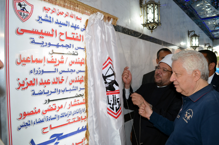 افتتح يوم الجمعة 7 / 4 / 2017م معالي وزير الأوقاف أ.د/ محمد مختار جمعة مسجد نادي الزمالك نيابة عن السيد رئيس مجلس الوزراء المهندس / شريف إسماعيل، وخلال الافتتاح أكد معالي وزير الأوقاف على أهمية التعاون بين جميع مؤسسات الدولة لاستيعاب طاقات الشباب وتوجيهها توجيها إيجابيًّا ، مشيرًا إلى ضرورة تنظيم الندوات والمحاضرات بالتنسيق مع إدارة النادي لترسيخ الأخلاق والقيم الإيجابية والوطنية في نفوس الشباب ، والاستعانة في ذلك بمجموعة من شباب علماء الأوقاف وغيرهم من العلماء والمثقفين ممن لهم القدرة على التأثير والتواصل مع الشباب ، والتفاعل مع قضاياهم والتأثير الإيجابي فيهم ، وتوجيه طاقاتهم لما فيه النفع لوطنهم ومجتمعهم.